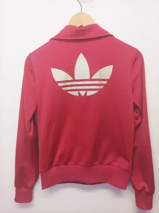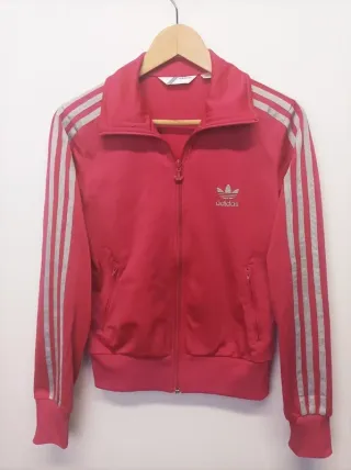 Chaqueta deportiva Adidas Originals en color rosa. Un clásico con las tres rayas icónicas. Rosa con las rayas blancas Talla 32 de mujer o M comprobar medidas Perfecto estado - Cierre de cremallera completo. - Bolsillos laterales con cremallera. - Cuello, puños y bajo elásticos.