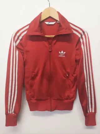 Chaqueta deportiva vintage Adidas Firebird en color rojo. - Diseño clásico con las tres rayas blancas en las mangas. - Logo de Adidas bordado en el pecho. - Cremallera frontal. - Bolsillos laterales con cremallera.