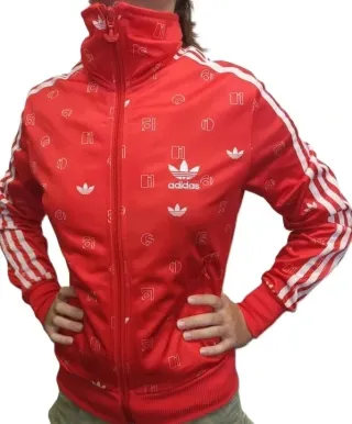 Chaqueta Adidas Firebird Roja Logo Blanco