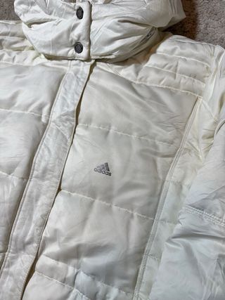Chaqueta acolchada Adidas con capucha, perfecta para el frío. Defecto: ver últimas fotos - Cierre de cremallera frontal. - Bolsillos laterales con cremallera. - Diseño acolchado horizontal.