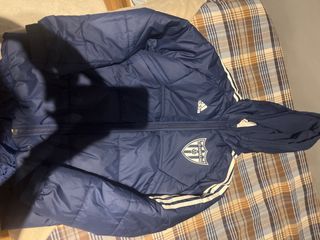 Chaqueta deportiva azul de la marca Adidas, con el escudo del Canillas bordado. - Diseño acolchado. - Cierre de cremallera. - Mangas con las tres franjas características de Adidas.