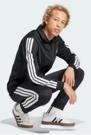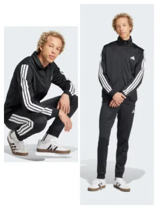 Conjunto deportivo de chándal completo. - Chaqueta con cremallera completa. - Pantalones con cintura elástica. - Diseño de tres rayas icónicas en mangas y perneras.