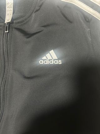 Chaqueta original Adidas en color negro con franja gris y las tres líneas clásicas en los hombros. Diseño deportivo y combinable con todo, perfecta para diario o para outfit urbano. Está en muy buen estado general. 🔎 Único detalle: tiene una pequeña mancha en la parte frontal (se aprecia en la foto), casi no se nota puesta. ✔ Cremallera funciona perfecta ✔ Tela cómoda y ligera ✔ Ideal para entretiempo La vendo a buen precio por ese pequeño detalle.