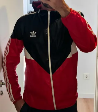 Sudadera/chaqueta Adidas Originals en color rojo con las clásicas tres rayas blancas en las mangas. Es el modelo retro con cierre completo de cremallera y el logo Trefoil bordado en el pecho. Tiene dos bolsillos con cremallera, puños y cintura elásticos para un ajuste cómodo. Está completamente nueva con etiqueta, nunca usada. Una prenda de estilo deportivo y urbano que combina fácilmente y aporta un toque clásico a cualquier look. Si necesitas más fotos, información o medidas, no dudes en escribirme. -Sin marcas de uso✅ -Precio negociable ✅ -Buena calidad ✅ -Envío en menos de 48h✅ -Cualquier cosa no dudes en preguntarme📩