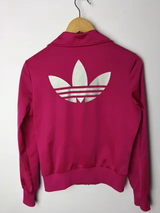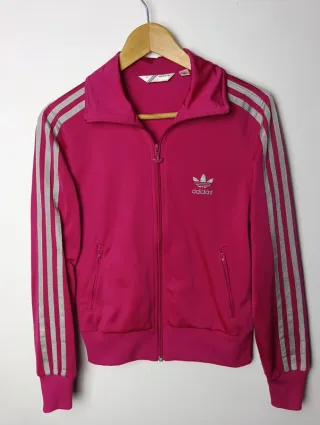 Chaqueta deportiva Adidas Originals estilo Firebird. - Diseño clásico con las tres rayas plateadas en las mangas. - Logo de Adidas bordado en el pecho. - Cremallera frontal. - Bolsillos laterales con cremallera. ©️ Artículo original. 🏷️ Talla en etiqueta: 34 EU (revisar medidas). 📏 MEDIDAS ↕️ 56 cms largo ↔️ 42 cms sisa ↕️ 70 cms largo de manga • Muy bien conservada 🔎 • Prenda lavada y planchada 🧽 • Rosa y plateado 🎨 • Poliéster 🔬 ✈️ Envíos rápidos y protegidos. ⚠️ No acepto devoluciones: todas las prendas de segunda mano pueden tener signos de uso.