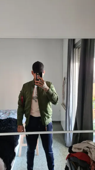 Chaqueta bomber Alpha Industries en color verde oliva. Como nueva usada en 3 ocasiones.