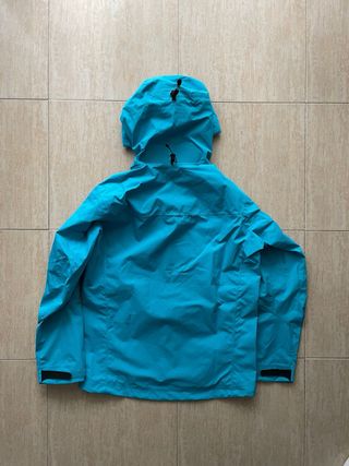 Chaqueta de GORE-TEX Arc'teryx Alpha SV en color azul. Talla M. En perfecto estado tanto estético comp funcional. - Capucha ajustable. - Cremalleras impermeables. - Bolsillos frontales con cremallera.
