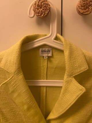 Americana de la marca Armani en color amarillo. Un clásico que aporta un toque de estilo. - Diseño de corte entallado. - Cierre de dos botones. - Bolsillos frontales con solapa.