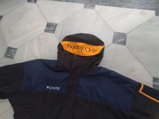 Chaqueta Columbia con diseño moderno y funcional. - Combinación de colores negro y azul con adornos amarillos - Capucha integrada. - Logo de Columbia en el pecho y en la capucha. - Talla XXL americana (ver medida en las fotos) - Muy llamativa y única.
