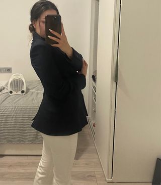Blazer clásico en azul marino oscuro de MANGO, en perfecto estado, usado solo una vez. Talla S, corte ligeramente oversize (ideal también para quien busque estilo relajado pero formal).