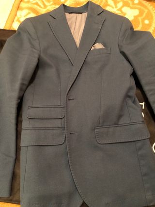 Americana color azul marino, talla 56. Nueva sin estrenar y con etiqueta. Corte clásico y tejido suave. Ideal tanto para ocasiones formales como informales. Precio original 259€