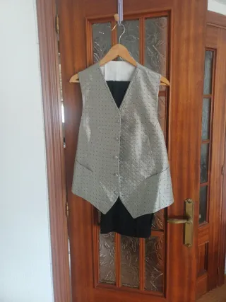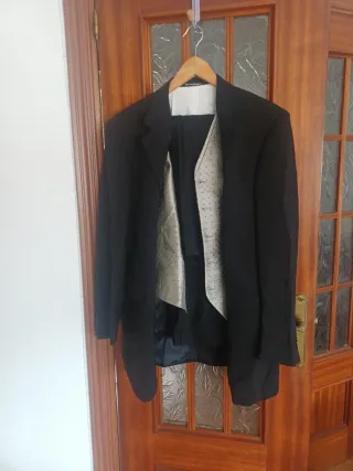 Traje de boda completo para novio. - Usado una vez solo - 3 piezas - Chaqueta negra. - Chaleco con estampado. - Pantalón negro.