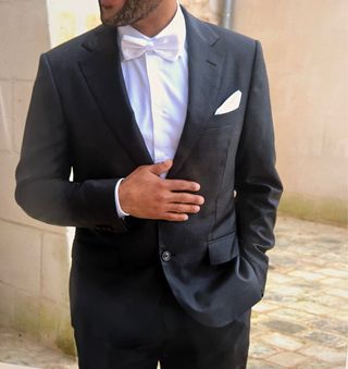 Chaqueta hombre de traje gris con ribete negro