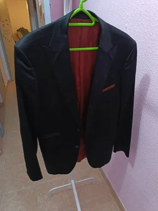 👔 ¡Completa tu look elegante con esta americana de traje! Vendo chaqueta negra de la marca PuroEgo. Un básico que te sacará de cualquier apuro, ideal para eventos, oficina o salir. ✨ 📏 Corte: Slim Fit. Queda muy entallada, estilizando la figura y dándole un toque moderno y elegante. (¡Recuerda añadir tu talla exacta!). ⚠️ ESTADO: La chaqueta está en buenas condiciones, pero tiene algunas manchas superficiales y polvo de estar guardada (ver fotos). Con un cepillo para ropa o limpieza en seco se quitan fácilmente y queda como nueva. 🧼 ¡Precio súper rebajado por este detalle! Escríbeme y cerramos trato. 🚀