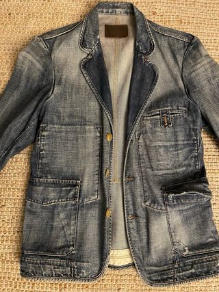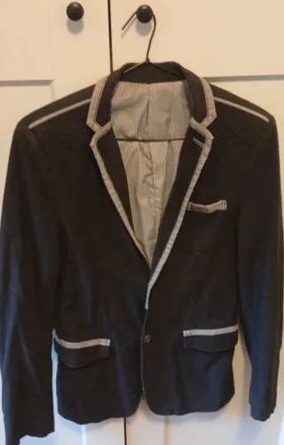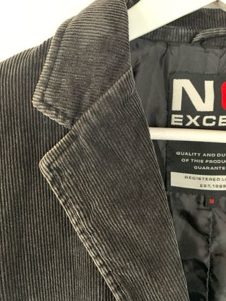 Americana de pana vintage de la marca No Excess. - Color gris oscuro - Talla M (equivalente a 38-40 / 48-50). - Cierre de dos botones. - Dos bolsillos delanteros. En muy buen estado. Marcas de desgaste de fábrica. Color gris oscuro. Usada máximo 3 ocasiones