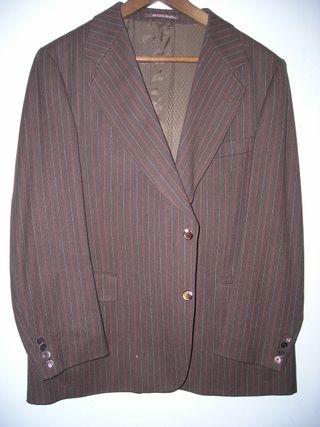 SOLO ENVIO POR INPOST,GRACIAS. LANA VIRGEN. ETIQUETA INDICA C6, SE DESCONOCE SI ES LA TALLA. MEDIDAS AMERICANA HOMBROS 47 M,CIZA 50CM,LARGO 79M. MEDIDAS HEBILLA HOMBRO 34 CM, LARGO 54 CM. MEDIDAS PANTALON CINTURA 53 CM, LARGO 100 CM. Americana de vestir para hombre. - Color marrón. - Cierre de hebilla.