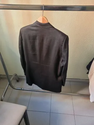 No entallada, regular fit. Color marrón y negro. Talla 52. 100% algodón. Casual y elegante. Impecable. Medidas: 75 cm alto x 58 cm ancho hombros x 48 cm ancho axilas.