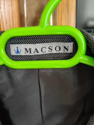 Americana de vestir de la marca MACSON en color gris. Es una prenda elegante y versátil. - Talla 54. - Diseño clásico con solapa. - Cierre de dos botones.