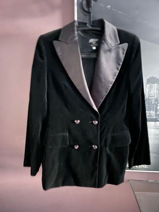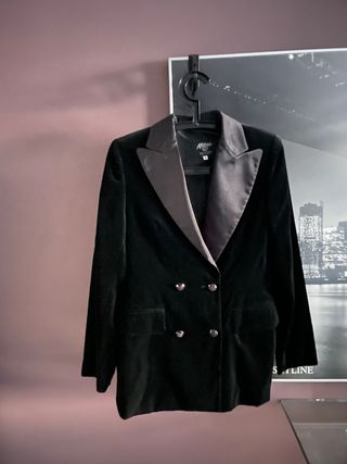 Americana de vestir Miltres.de terciopelo talla 40 con solapa raso - Diseño de solapa satinada. - Cierre de doble botonadura. - Bolsillos frontales con solapa.