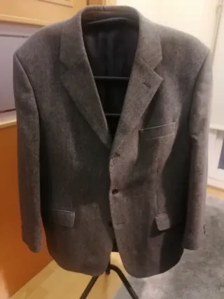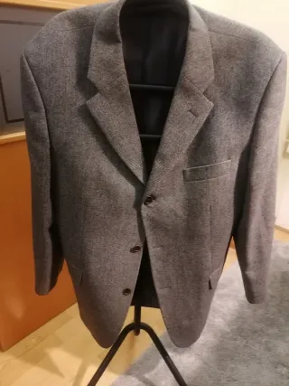 Americana t 54 de caballero en talla 54. Una prenda clásica y versátil. Jaspeado gris. - Diseño de solapa ancha. - Cierre de tres botones. - Bolsillo de pecho. - Dos bolsillos inferiores, todavía si abrir. - Forro interior. Entrego en mano. Fòrus Sardenya 549 Barcelona