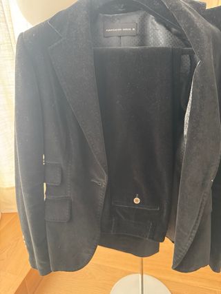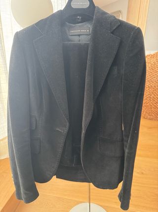 Elegante traje de chaqueta de la marca Purificación García. - Chaqueta de corte clásico. - Pantalón a juego. - Confeccionado en terciopelo.