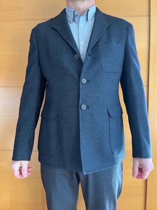 Chaqueta americana con las etiquetas originales. En color gris oscuro talla 48 lo puedes combinar con pantalón de traje en cualquier color o de manera más informal con vaqueros 👖 - Cierre de botones. - Dos bolsillos frontales. - Un bolsillo en el pecho.