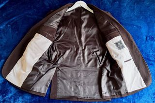 Americana de Zara para hombre en color marrón chocolate con un acabado de efecto ante o suede. Una prenda con un toque rústico y sofisticado a la vez. Es ideal para looks de oficina smart-casual, citas o eventos informales. - Marca: Zara - Talla: 48 (EUR) - Equivalente a una M - Color: Marrón Chocolate (Dark Brown) - Material: Efecto ante / Suede (sintético, forro de satén) y algodón - Corte: Entallado, dos botones - Detalles: Parches en los codos, bolsillos de parche - Desperfectos: Ninguno