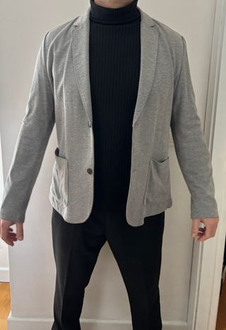 Americana HM de estilo casual, informal en color gris para hombre. Talla L. En la foto, la persona mide 1,80m y peso 85Kg.