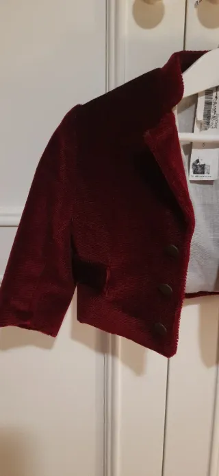 Chaqueta fallero sargüell en perfecto estado. Terciopelo color vino, bien cuidada. Usada solo 1 vez. Ideal hasta niños de 2 años.