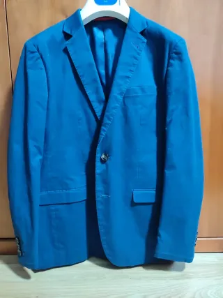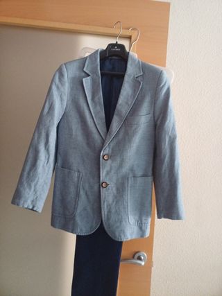 Traje chaqueta niño 12-14 años medidas 164 de lino color azul azafata. Solo una puesta.