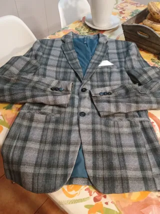 Traje de chaqueta de la marca Zara para hombre. Un clásico para cualquier ocasión. - Chaqueta con solapa de muesca. - Cierre de dos botones. - Bolsillo de ribete en el pecho. - Diseño de cuadros finos. Pantalón talla 40 y chaqueta talla 46.