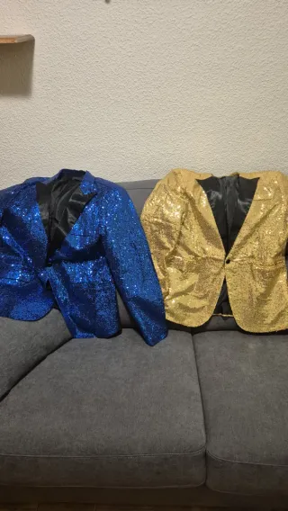 Chaquetas de lentejuelas azules y doradas