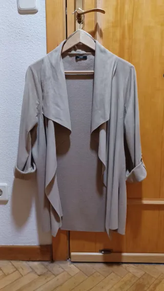 Chaqueta de Parfois con un diseño elegante y moderno, perfecta para añadir un toque chic a tu atuendo. - Confeccionada en antelina delanteros y mangas y punto en la espalda color topo. Talla M/L - Diseño abierto con solapas. - Mangas largas enrolladas.