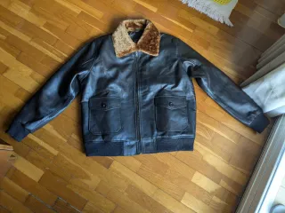 Más prendas de cuero en mi perfil. Bomber piloto aviador. Usada, pero en muy buen estado, sin defectos, manchas ni desgaste. El puño elástico derecho tenía dos agujeros de unos milímetros, actualmente están cosidos, apenas se nota. Forro y cintura en perfecto estado. Cuero vacuno grueso y pesado de excelente calidad, ligeramente rígido y muy resistente. Textura de grano medio. Color negro intenso. Talla L. El modelo mide 1 74 y pesa 82 kgs. Medidas indicadas en las fotos. Preguntar cualquier información sin compromiso.