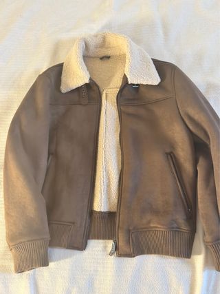 Chaqueta estilo aviador, ideal para un look moderno y abrigado. Es una prenda nueva, SIN ESTRENAR , con etiquetas . - Diseño con cuello de borreguito. - Cierre de cremallera frontal. - Bolsillos laterales. - Puños y bajo con detalle de borreguito.