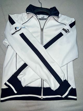 Chaqueta deportiva de Puma con diseño inspirado en el equipo BMW Williams F1. - Color blanco con detalles en azul marino. - Logo de Puma en la manga. - Inscripción BMW.WilliamsF1 Team en la otra manga.