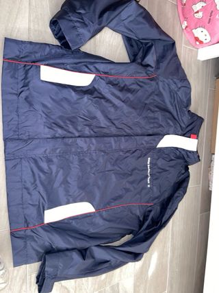 Diseño bicolor en azul marino y blanco. • Logotipo de BMW Motorsport en el pecho y parche oficial en la manga. • Cierre central con cremallera reflectante para mayor visibilidad. • Interior forrado con malla transpirable • Ajuste inferior mediante cordón elástico con tanca. • Ideal para fans del automovilismo, F1 o estilo sportswear/racing. el material reflectante de la cremallera tiene un poco de desgaste natural. en la foto de la espalda, el blanco del texto se ve "cuarteado" o con puntos donde falta pintura, lo que le da un aire "grunge", Medidas Sisa 45 cm Largo 5/ cm #BMW #BMWMotorsport #BMWM
