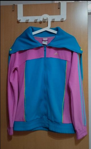 Chaqueta Adidas. Color fucsia y azul con detalles en amarillo fosforito. Talla S - 36 NUEVA sin etiqueta