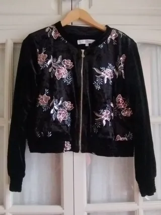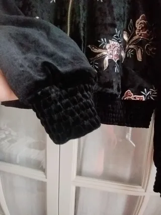 Bomber terciopelo bordada flores L