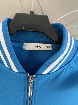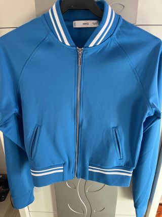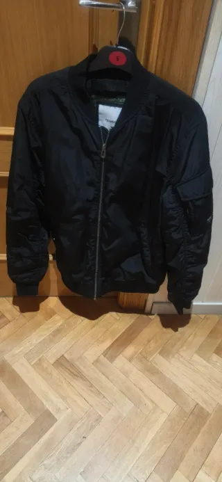 Cazadora tipo bomber de la marca Zara. - Cierre de cremallera frontal. - Bolsillos laterales con cremallera. - Puños y bajo elásticos. - Usada dos veces, como nueva