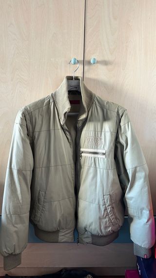 Chaqueta tipo bomber acolchada ligera de Levi's. Color beige/arena, muy fácil de combinar con vaqueros. • Estado: En perfecto estado. • Detalles: Cuello alto de punto, cremallera frontal, bolsillos laterales, bolsillo con cremallera en el pecho y logo en el pecho. Etiqueta Red Tab original. • Talla: M. Ideal para entretiempo o inviernos suaves. Corte muy cómodo y favorecedor.