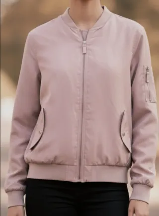 Chaqueta bomber de Zara en color rosa. Un básico versátil para cualquier armario. - Diseño tipo bomber. - Cremallera frontal. - Puños y bajo elásticos.