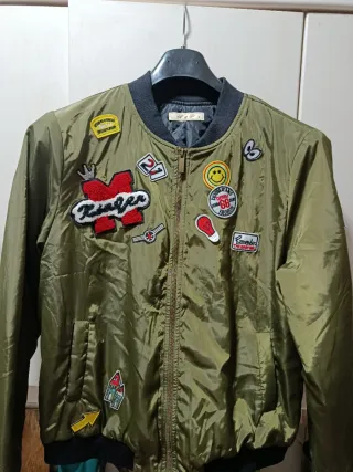 Chaqueta bomber verde con parches