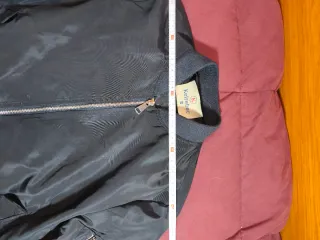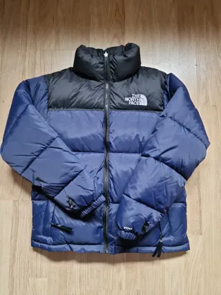 Abrigo acolchado con diseño bicolor. - Parte superior en negro. - Parte inferior en azul marino. - Cierre de cremallera frontal. - Puños ajustables. - cremallera en los bolsillos Talla s unisex Medidas aproximadas : Ancho cintura 52cm Largo 64,5cm Manga 72cm
