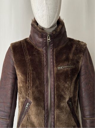 Chaqueta bomber ajustada von cuello alto de pelo sintético marrón vintage y2k. Talla xs. Medidas: Hombro a hombro: 40 cm Sisa a sisa: 42 cm Largo manga: 62 cm Largo chaqueta: 54 cm Precio negociable