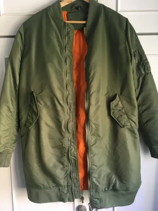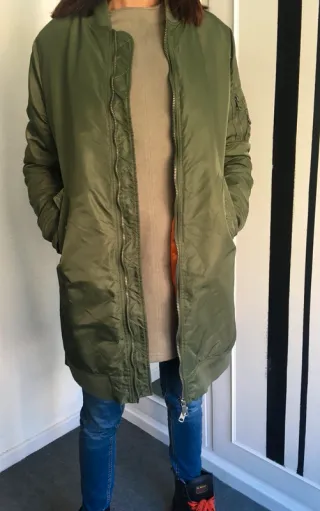 Chaqueta estilo bomber larga con forro interior. - Cierre de cremallera. - Bolsillos laterales. - Puños y bajo elásticos.