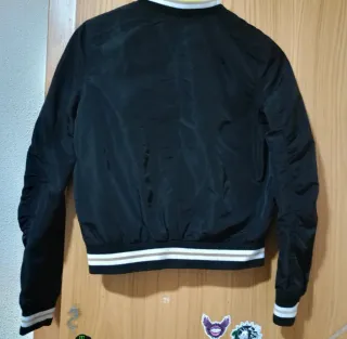 Chaqueta bomber negra con parches Talla M