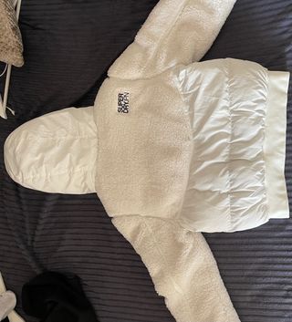 Cazadora bomber híbrida de la marca Superdry, modelo Everest. - Diseño acolchado en blanco. - Paneles laterales de borreguito. - Cremallera frontal. - Bolsillos con cierre de botón.