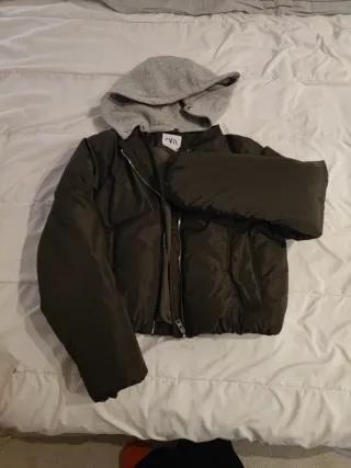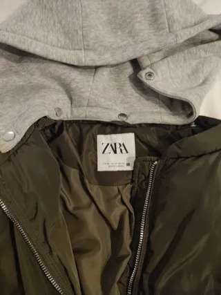Chaqueta acolchada estilo puffer de Zara. Es una prenda cómoda y cálida. - Bolsillos laterales con cremallera. - Puños elásticos. - Cordón ajustable en el bajo. - Dentro de la chaqueta hay otro cierre con cremallera. - Cuello acolchado.