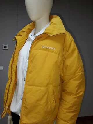 Chaqueta acolchada de color amarillo vibrante, con un diseño moderno y un detalle de logo. - Cierre de cremallera frontal. - Cuello alto. - Bolsillos laterales.